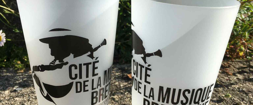 Le breton fait et refait le monde au comptoir. Rien de tel qu’un gobelet Ecocup/Cité de la musique bretonne, pour échanger ensemble au fest-noz sur la construction de ce projet.